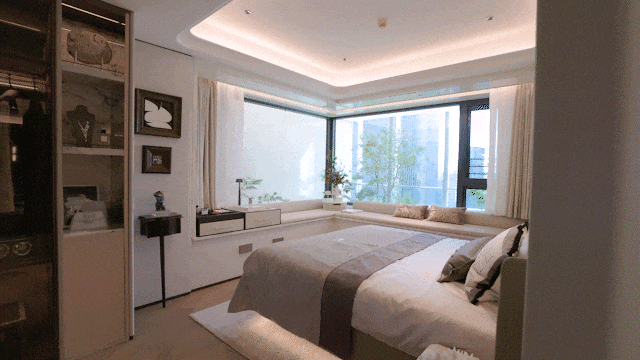 约134㎡大三房+约270°飘窗,对于自住而言,海上·清和玺将风雨连廊扩容为一个完整的归家系统,将整个社区以约500米全域连廊系统贯通,实现资产增值或具有抱负栖身。而且,皮革制型的床布景墙也是交付尺度,